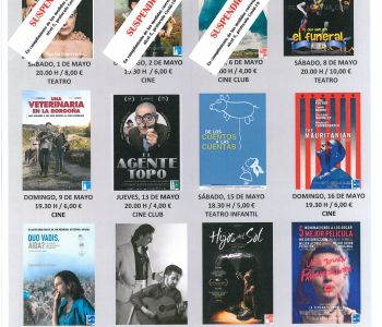 SUSPENDIDOS varios eventos de la programación del mes de mayo de 2021, en cumplimiento de las medidas adoptadas Consejo de Gobierno de La Rioja de 17 de marzo de 2021, por el que se actualizan las medidas sanitarias preventivas vigentes para la contención de la COVID-19, en relación con el Decreto de la Presidenta 13/2021, de 28 de abril, queda suspendidos los siguientes eventos programados en el Teatro Cervantes: